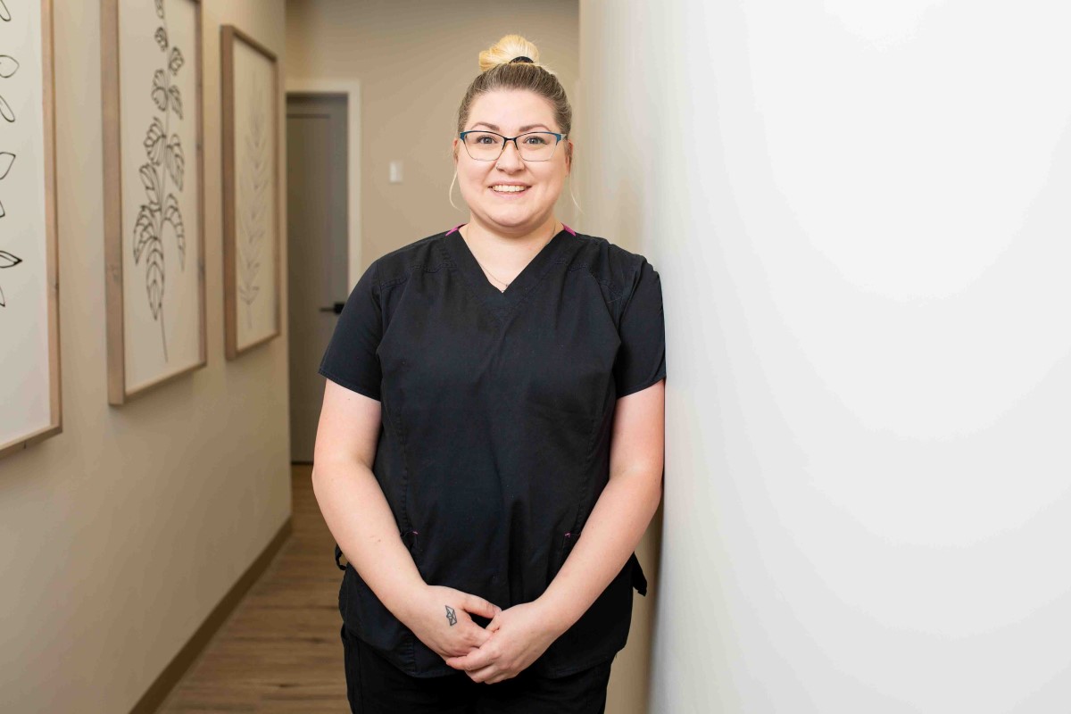 Shelby is our Lead Dental Assistant and was born in Stanley. She is a loving mother to two boys, Jay and Finnley, and loves watching them grow up—she enjoys cheering on Finnley at his hockey games! She loves the outdoors and stays active by farming and playing softball.